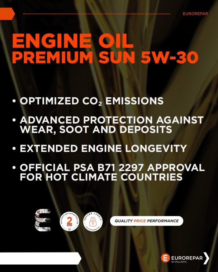 “EUROREPAR PREMIUM SUN 5W-30 is an engine oil offering exceptional performance in protection against wear and deposits that will improve engine ageing and robustness, is mentioning Cédric Munier, Lubricant Aftersales Product Manager”.